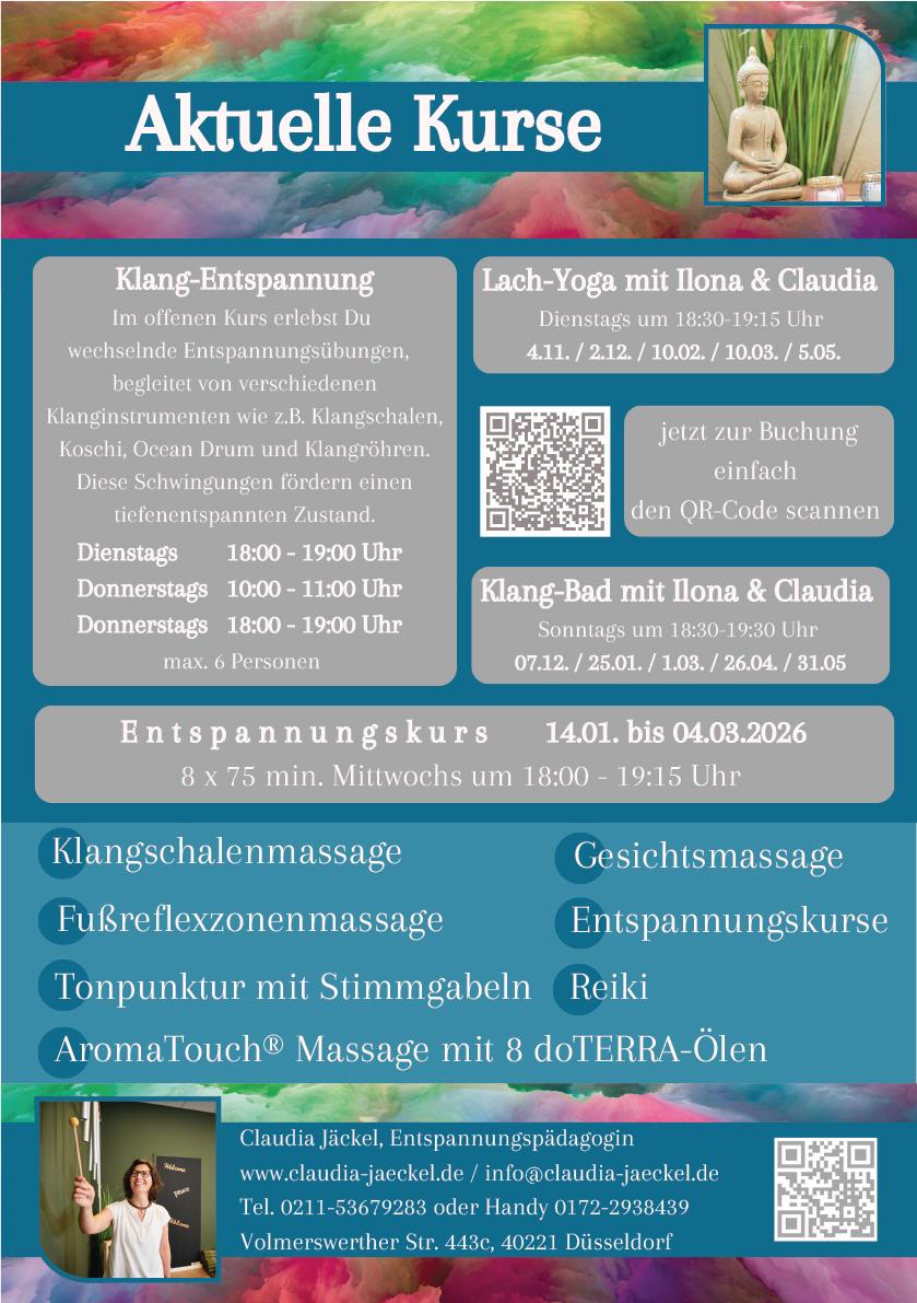 Hier findest du meinen aktuellen Flyer mit allen Terminen für Lachyoga, Klangbäder, Workshops und Kurse. Wenn du auf die Bilder klickst, gehen sie nochmal größer auf.